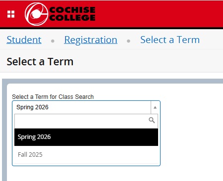 1. Select a Term (Spring 2026), then click Continue.